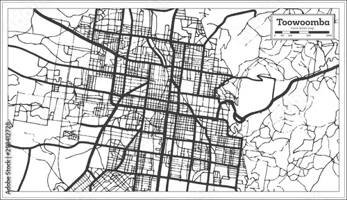 Naklejka premium Mapa miasta Toowoomba Australia w kolorze czarno-białym. Mapa przeglądowa.