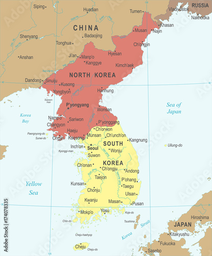 Obraz premium Mapa Półwyspu Koreańskiego - ilustracji wektorowych