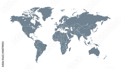 Fototapeta premium Mapa świata. Nowoczesna, szara mapa wektorowa. Mapa sylwetkowa