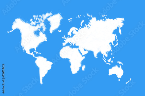 © paisan191, Fototapeta premium Mapa świata w kształcie chmury na błękitnym niebie