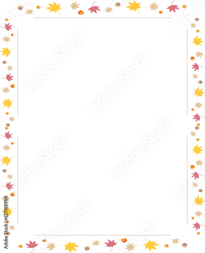 Fototapeta premium Maple Leaf acorns Fall Theme Border Frame 2