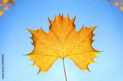 © Tanya Rozhnovskaya, Obraz premium Maple leaf against the blue sky.