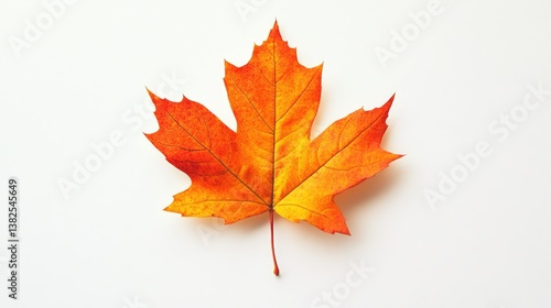 © Oleksandr, Fototapeta premium Maple Leaf Background. Horizontal Autumn Maple Leaf with Sunlight on Fresh White Background