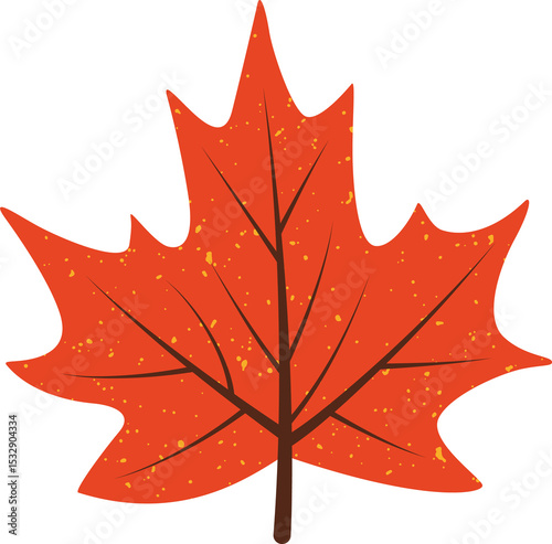 © vectorfusionart, Obraz premium Maple leaf is being shown in vector design, brown-veined yellow-speckled on transparent background