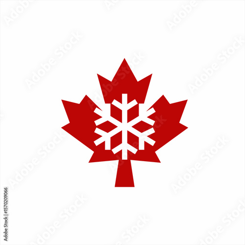 Obraz premium Maple leaf logo design with snowflake symbol.