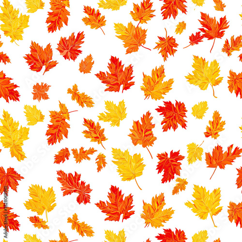 © Wong, Obraz premium Maple Leaf Seamless Pattern in Red, Orange & Yellow on White
