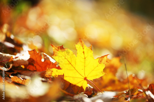 Fototapeta premium Maple leaves in park, close-up