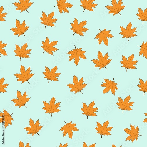 Obraz premium Maple leaves, seamless pattern with leaf on blue background