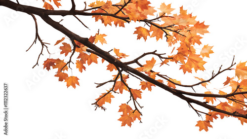 © SekhSadi, Fototapeta premium Maple tree branch in autumn on corner border, isolated on white background.AI GENERATED
