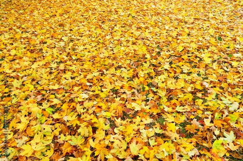 Obraz premium Maple tree fall yellow leaves change on the ground background