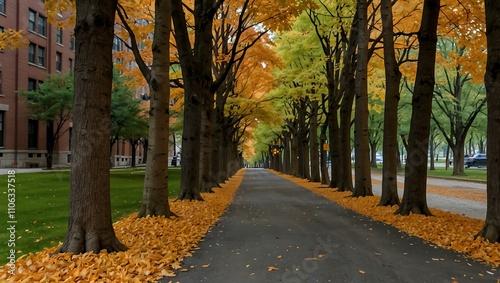 © claudunia, Naklejka premium Maple tree-lined alley in a city park.