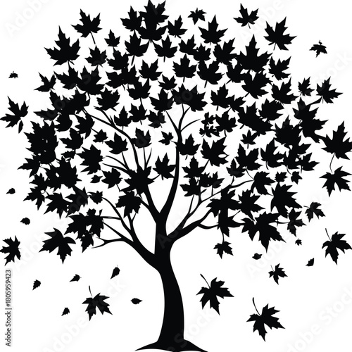 Naklejka premium Maple Tree Silhouette Vector for Autumn, Nature, and Seasonal Design