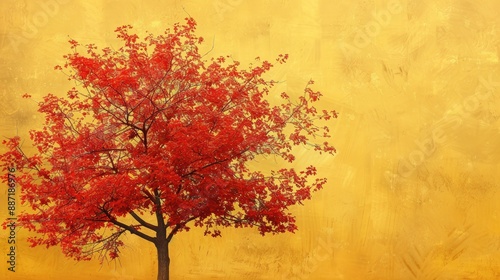 © VRVisionary, Fototapeta premium Maple tree with pale yellow backdrop