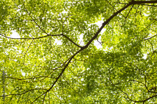 © akeeris, Fototapeta premium maple tree, yellow leaves brighten maple tree in the forest