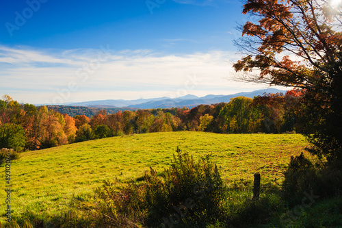© Don Landwehrle, Obraz premium Maple trees on a hillside in Vermont during peak foliage season.