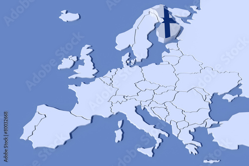 © albasu, Obraz premium Mappa Europa 3D con rilievo colori Finlandia