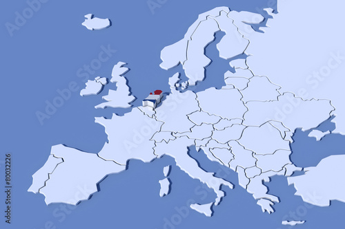 © albasu, Fototapeta premium Mappa Europa 3D con rilievo colori Paesi Bassi
