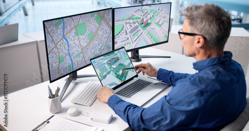 © Andrey Popov, Obraz premium Mapping Properties With Computerized Survey And Valuation Plan