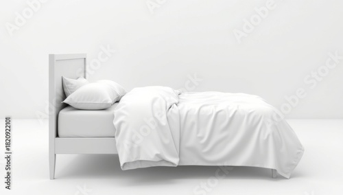 © Leonardo, Naklejka premium Maqueta de cama en blanco con sábanas blancas y sombras mínimas
