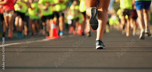 © pavel1964, Naklejka premium Marathon running in the light of evening