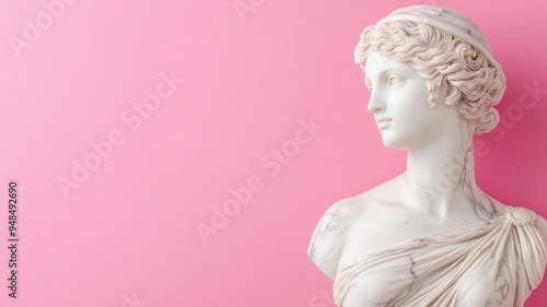 Naklejka premium Marble figure in pastel pinks, enhanced with digital elements, merging classical elegance with modern technology