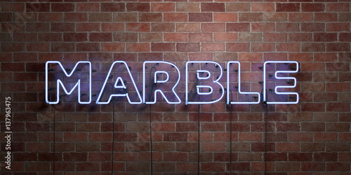 © Chris Titze Imaging, Obraz premium MARBLE - fluorescent Neon tube Sign on brickwork - Front view - 3D rendered royalty free stock picture. Can be used for online banner ads and direct mailers..