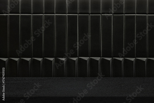 © mesamong, Obraz premium Marble Table with Modern geometric black wall background