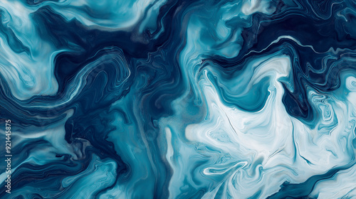 Obraz premium Marbled paper background in deep oceanic tones