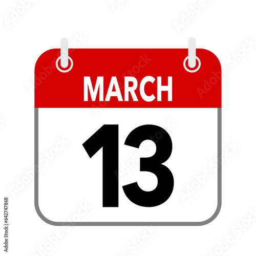 Fototapeta premium 13 March, calendar date icon on white background.