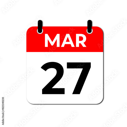 Fototapeta premium March 27 Calendar Icon, Daily Date and Event Planner Symbol