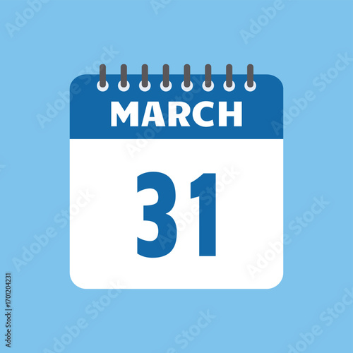 © MdRaju, Fototapeta premium march 31 calendar icon Vector page month design
