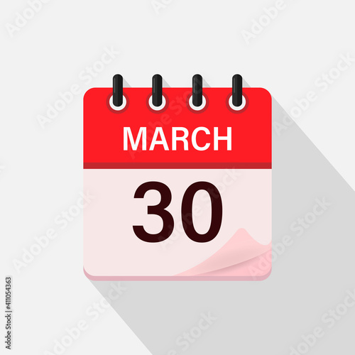 Fototapeta premium March 30, Calendar icon with shadow. Day, month. Flat vector illustration.
