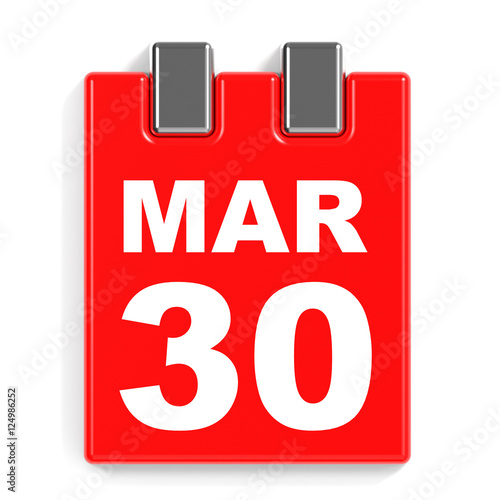 © icreative3d, Fototapeta premium March 30. Calendar on white background.