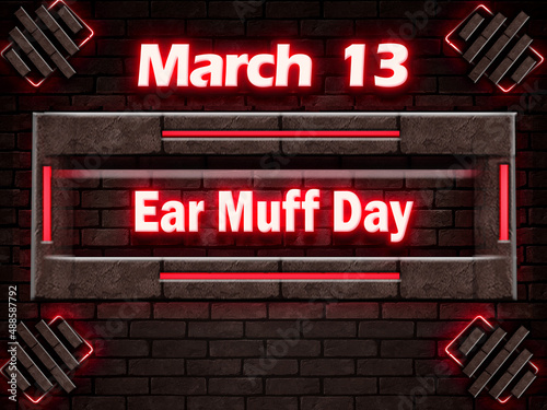Fototapeta premium 13 March, Ear Muff Day, Neon Text Effect on bricks Background