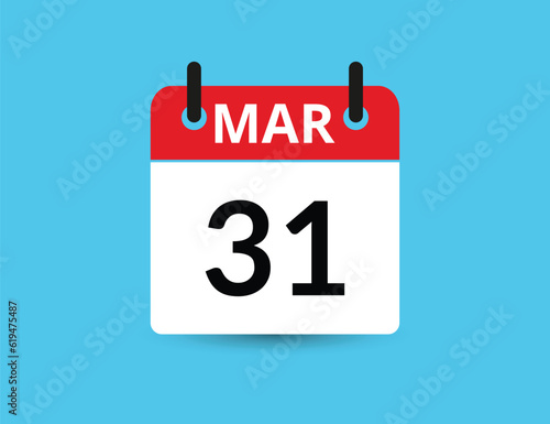 © Mahmud Creative, Fototapeta premium March 31. Flat icon calendar isolated on blue background. Date and month vector illustration