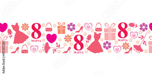 Fototapeta premium March 8 horizontal pattern seamless