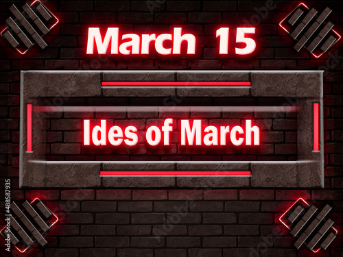 Fototapeta premium 15 March, Ides of March, Neon Text Effect on bricks Background