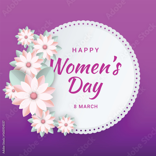 Fototapeta premium 8 march international women's day floral greeting card on purple background vector