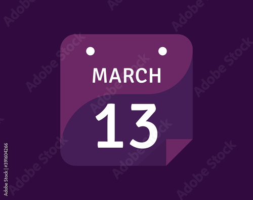 Fototapeta premium 13 March, March 13 icon Single Day Calendar Vector illustration