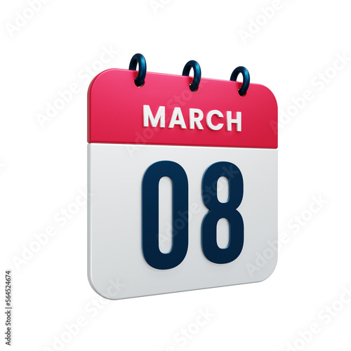 Fototapeta premium March Realistic Calendar Icon 3D Illustration Date March 08