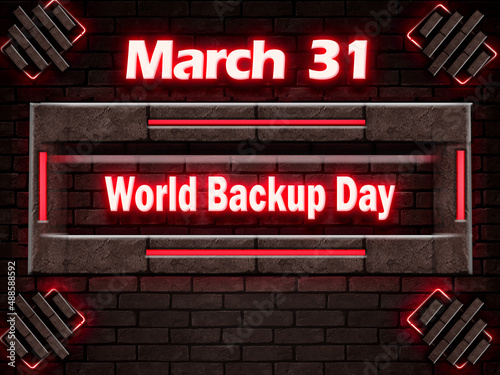 Fototapeta premium 31 March, World Backup Day, Neon Text Effect on bricks Background