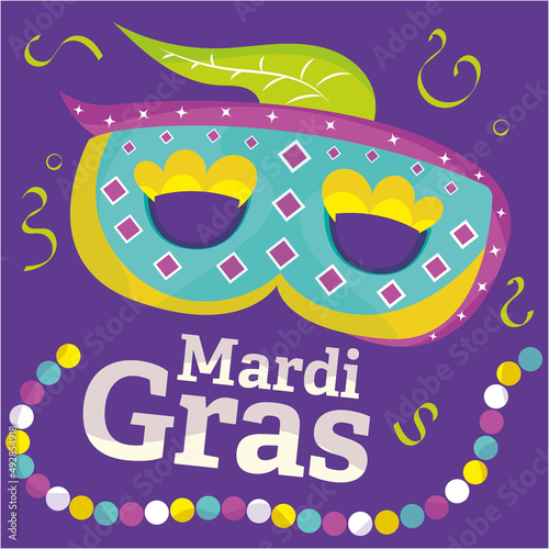 © Rosustock, Naklejka premium Mardi gras poster venetian mask with feather decoration Vector