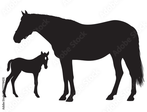 © Rabia, Obraz premium MARE AND FOAL SILHOUETTE