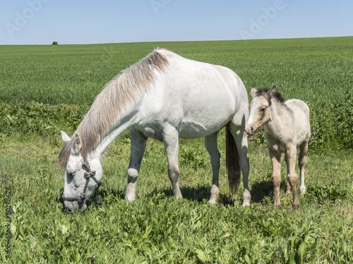 © max8xam, Fototapeta premium Mare with her foal in the field