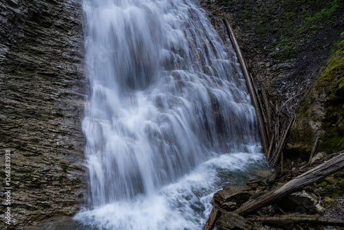Obraz premium Margaret Falls loop trail with mountain stream near Shuswap lake British...