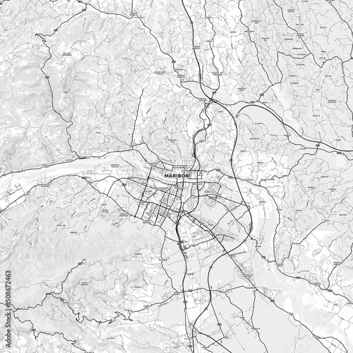 © Knut Hebstreit, Fototapeta premium Maribor Area Map with Labels and Neighborhoods - One color, minimalistic design