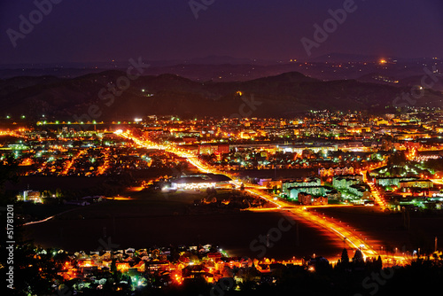 © dejangasparin, Fototapeta premium Maribor by night with hills in background by the full moon