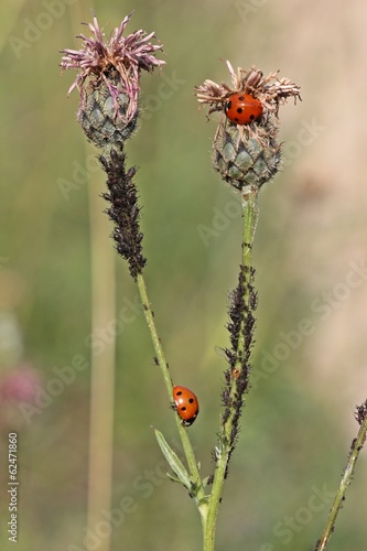 © Schmutzler-Schaub, Naklejka premium Marienkäfer fressen Blattläuse an Skabiosen-Flockenblume