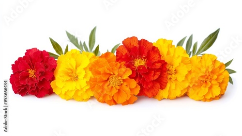 Obraz premium Marigolds, a kaleidoscope of colors, shine on white.