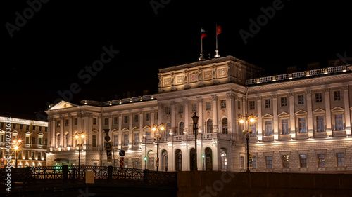 Fototapeta premium Mariinsky Palace on St. Isaac's Square. Fragment. Night shot. Saint-Petersburg, Russia